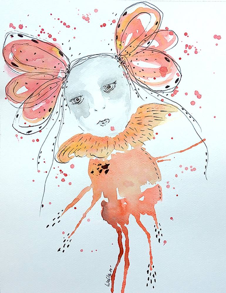 "The doll" is an expressive, unique and intriguing work made with mixed technique, watercolor, ink and fine liner drawing gives a very interesting effect, gives structure.The most expressive element becomes ink in a beautiful cobalt color. Work sold with passe-partout in black. Dimension in passe-p...