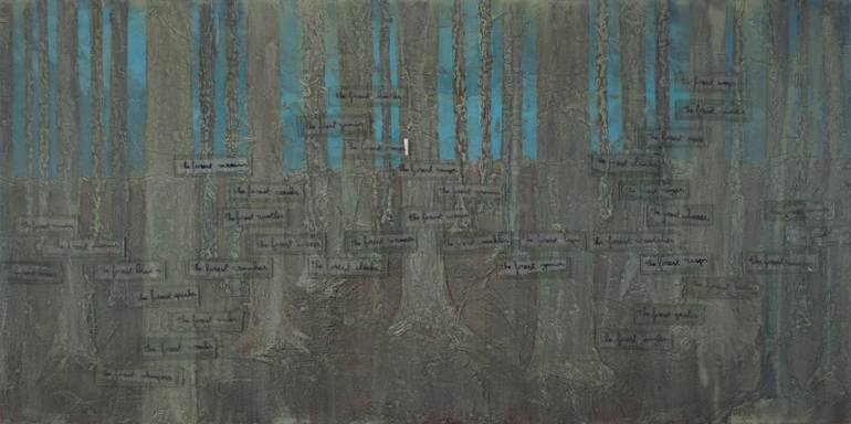The painting is inspired by the beautiful book The Overstory by Richard Powers. This book describes how forests are actually a nation of trees that communicate with each other through networks of microscopic roots and warn each other of danger. The forest talks, whispers, screams, gnaws....