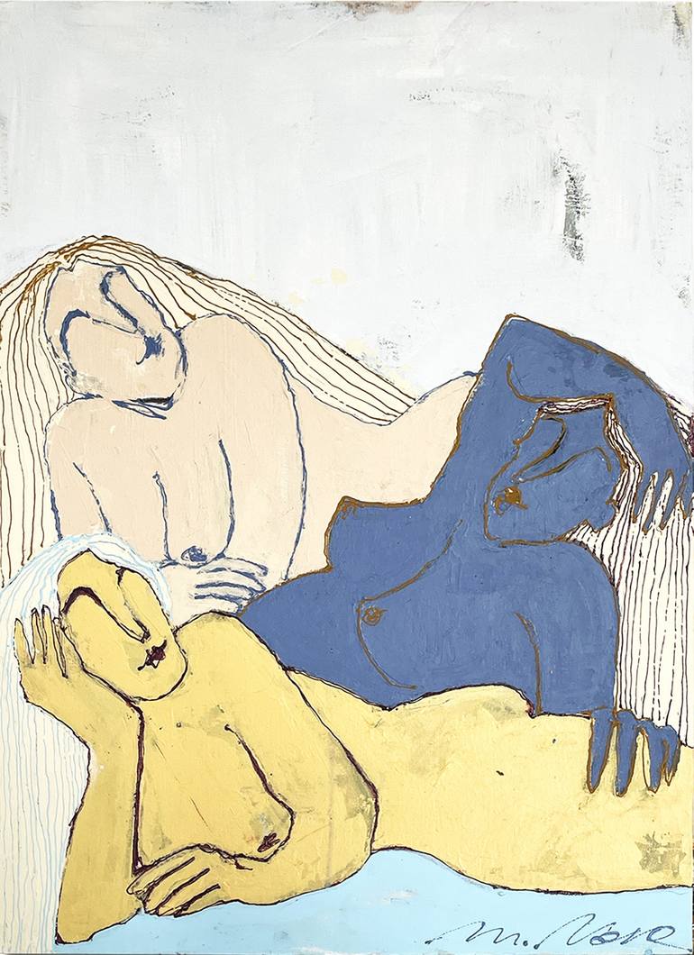 I am a self-taught artist specializing in the use of palette knives and impasto painting. Throughout my artistic journey, I have explored various techniques, ultimately favoring this unique approach. My primary subjects are anatomical bodies, which I depict through a continuous study of positions and perspectives, often surreal. Additionally, I create textured landscapes using instinctive techniques. My works are characterized by their texture: I use four acrylic colors, creating a contrast with various shades of white that impart depth to my seemingly flat compositions. In my paintings, a deliberately imperfect line enhances the harmony between elements, conveying a raw and pure emotion.