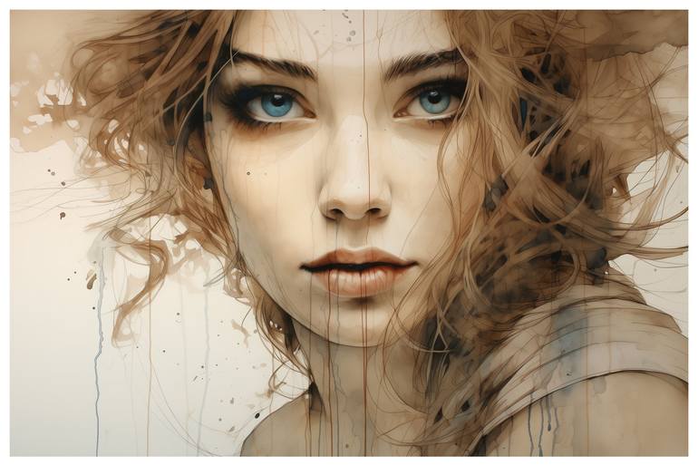 "Timeless Beauty" is a captivating mixed-media portrait that masterfully blends the ethereal beauty of watercolor, the rustic charm of tea staining, and the bold precision of ink. This unique artwork transcends traditional boundaries, offering a profound exploration of emotion and abstraction. Craft...