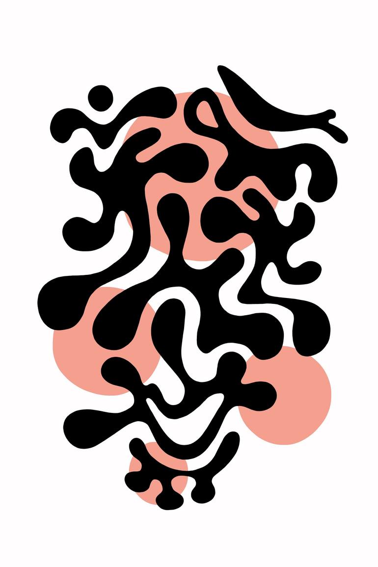 Modern abstract design with flowing, dynamic shapes. A mix of rhythm, floating figures and surreal movements can be discovered in the works of the lively "Twisted Beats" series. The high-contrast painting creates a captivating tension. Experimental decorative art with pop art character. Available in...