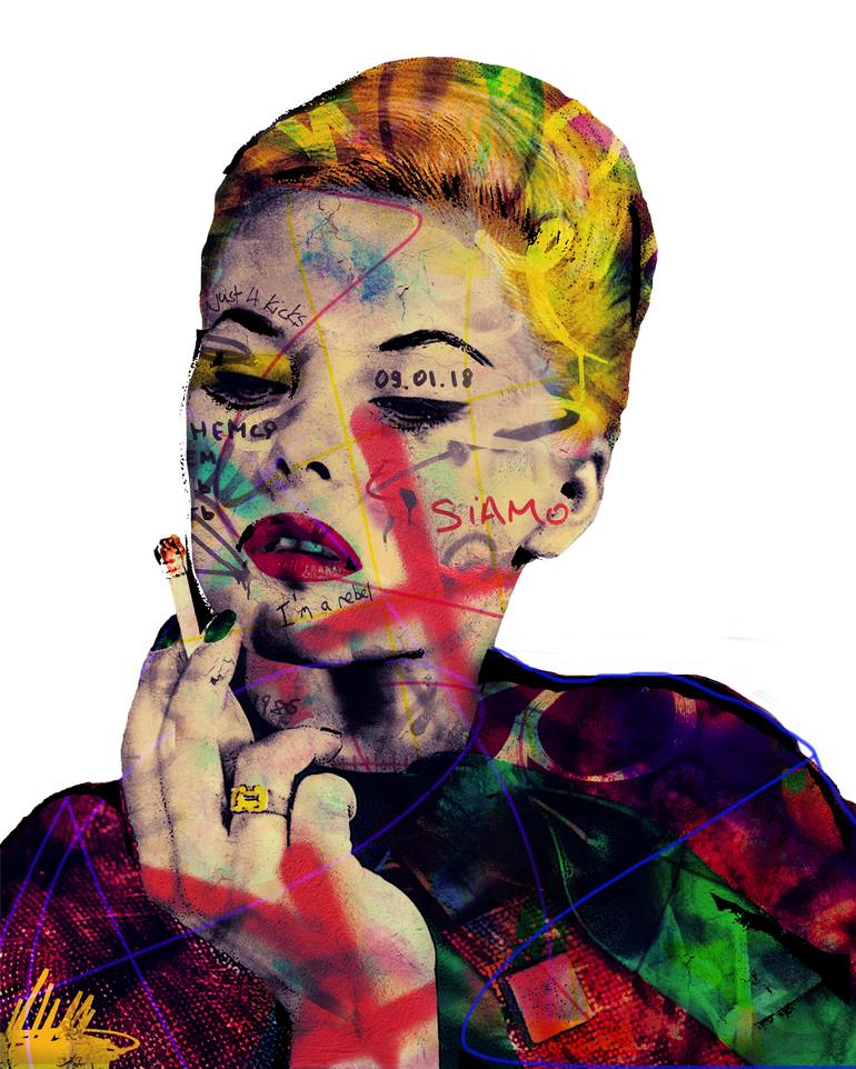 Hello, I'm a visual artist. I working photos, collage and colorization. I have a great sensitivity for the past, I like working on old documents, old photos of couples, or celebrities, and I color them with colors that are as washed out as flashy. I work on these documents by merging them with textures that I photographed. Textures, inscriptions, texts, signatures ... taken often during trips. There are inscriptions all over the place, from bridges in Paris, in Florence, to the Rialto bridge, in South America, or even toilets in bars deep in the Balcans. I like to put all these stories together in one piece. Find consistency among all these elements. The cartoons are oil paintings, the other works are printed on diasec, its exceptional quality and incredible rendering. The photo is printed on HP Premium 250g photo paper, a 3 mm thick aluminum plate, on which your photo is glued, and a 2 mm Plexiglas plate, which reinforces the whole. Elegance, modernity and high quality. I work with Absolute art gallery (Belgium), and the Roy Sfeir gallery (Paris). curator@saatchiart.com