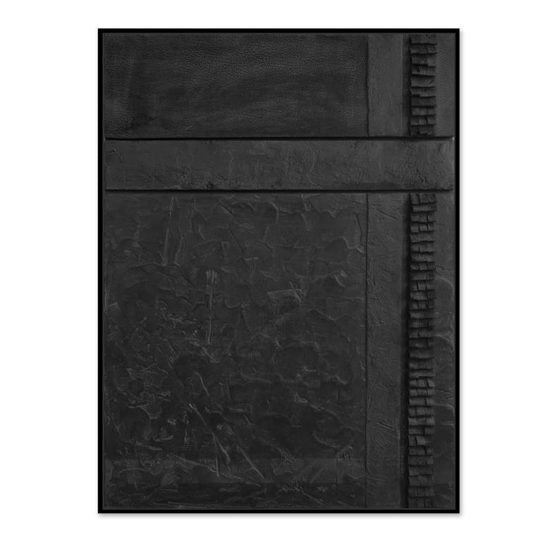 Monochrome wallart in mixed media. My wallart is based on a desire to pay with different materials, and make them work together. Black oak frame is included