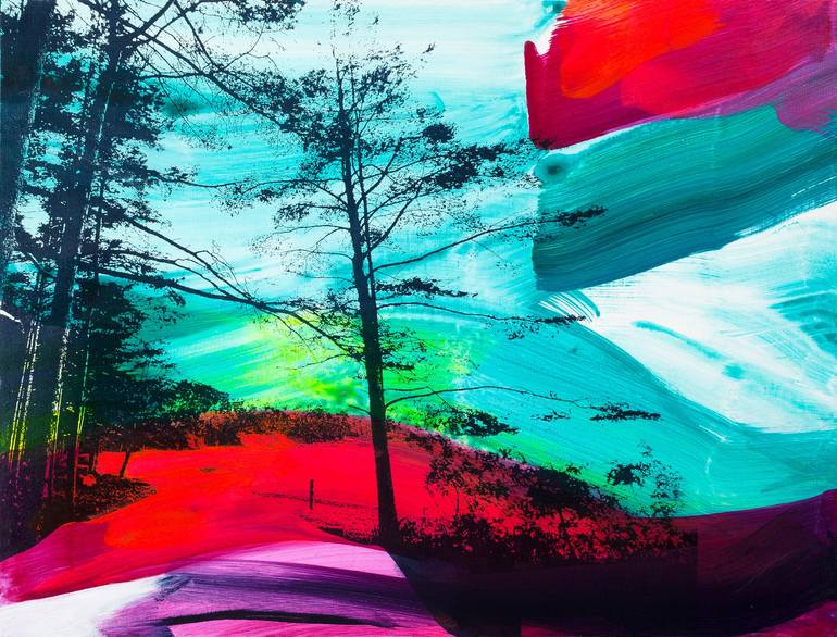 Responding to the nurturing energy of the Norwegian landscape through colour. A blend of gestural brush stokes with graphic form. Acrylic on plywood panel with hand-pulled screen print Framed in a bespoke black wooden tray frame Signed Comes with a Certificate of Authenticity