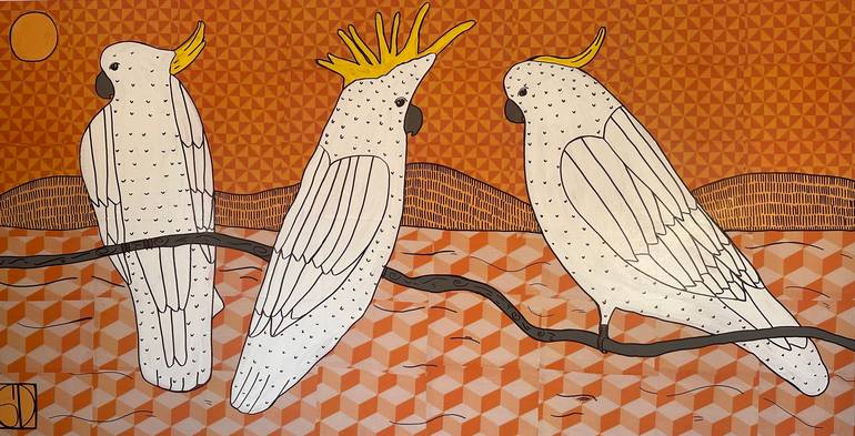 I try and capture the personalities of these large, curious and naughty birds through a naive and simple style. Colour and pattern are a big theme in my work.