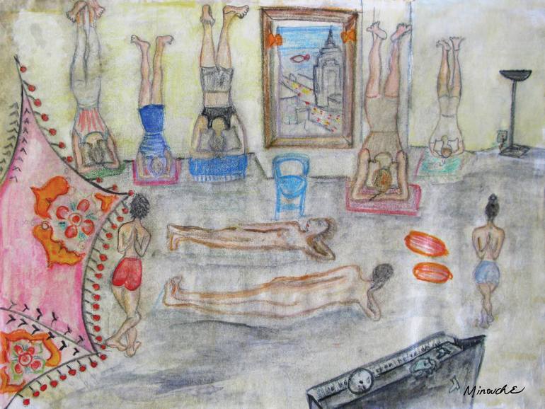 Yoga class at Lotus studio in NYC - by Minouche Original: giclee on canvas - hand signed, numbered and dated print 16" x 12" Prints - photo paper, fine art paper or canvas signed and dated. custom work available upon request. First yoga classes were so much fun and so totally relaxed discoveri...