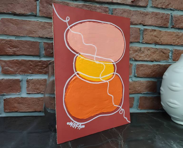 "Zen Minimalism. Stones in Terracotta Nature" is an original home decor that beautifully marries the warmth of terracotta red cardboard with the serene hues of orange, yellow, and peachy pink stones, meticulously crafted with relief paste. This striking minimalist artwork serves dual purposes,functi...