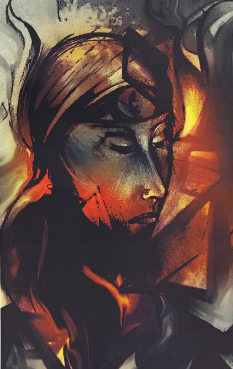 My freind Khlood let me draw her( thanks again )/this is a cut of the orginal sketch+some photoshop color burn, etc.