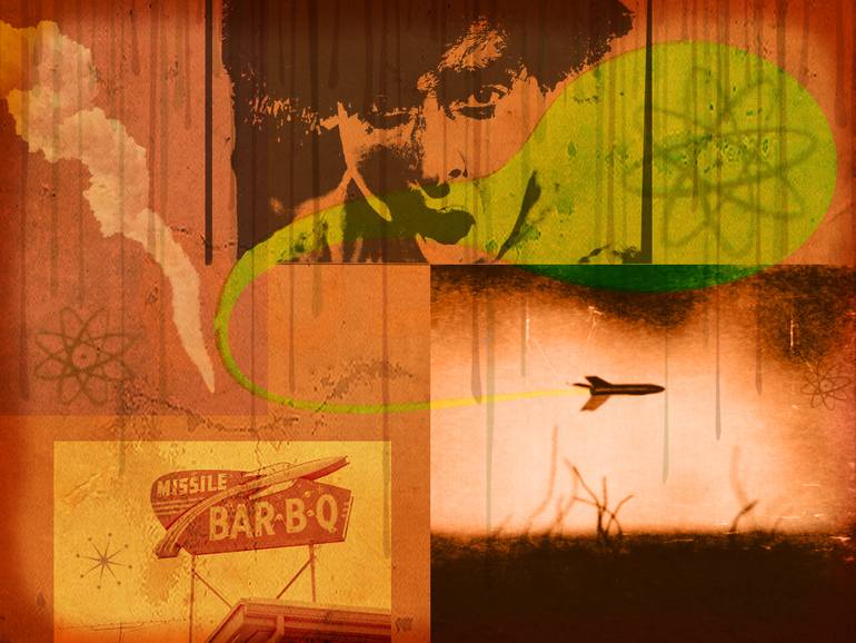Missile in flight shows the tension and graphic image of the projectile in motion, This is available only as a Saatchi produced print option since it's a digital image.