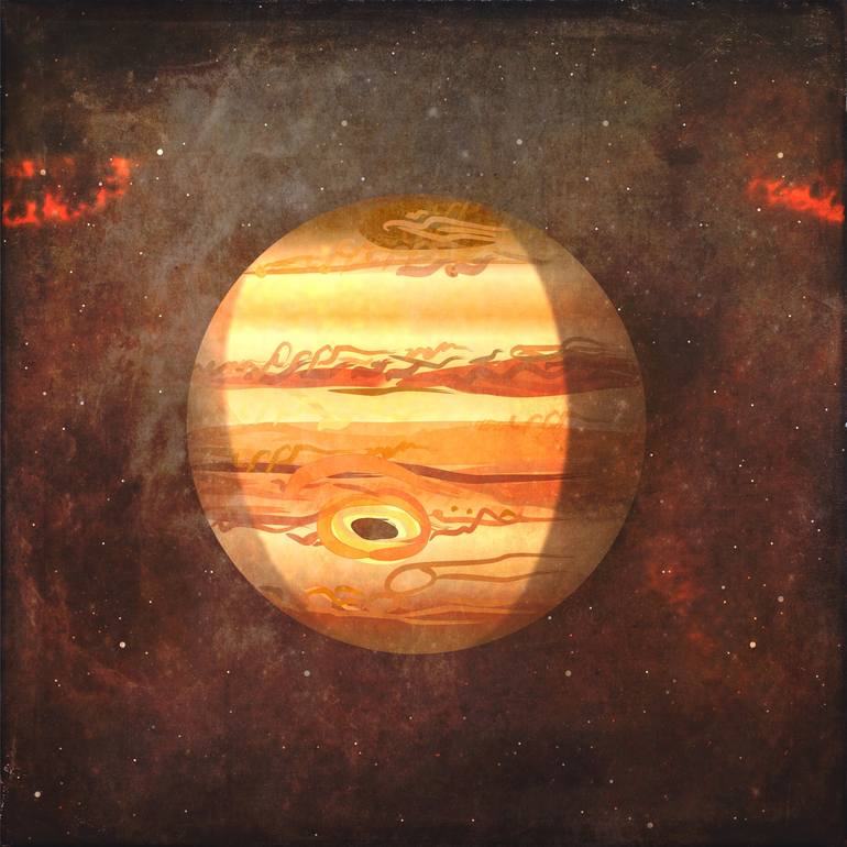 "ojúpiter rem" is a unique piece born from a lifelong passion for art. For over a decade, the artist ojolo has dedicated themself to creation, exploring different paths to share their vision with the world. This modern mixed media artwork combines digital techniques with the tangible quality of pap...