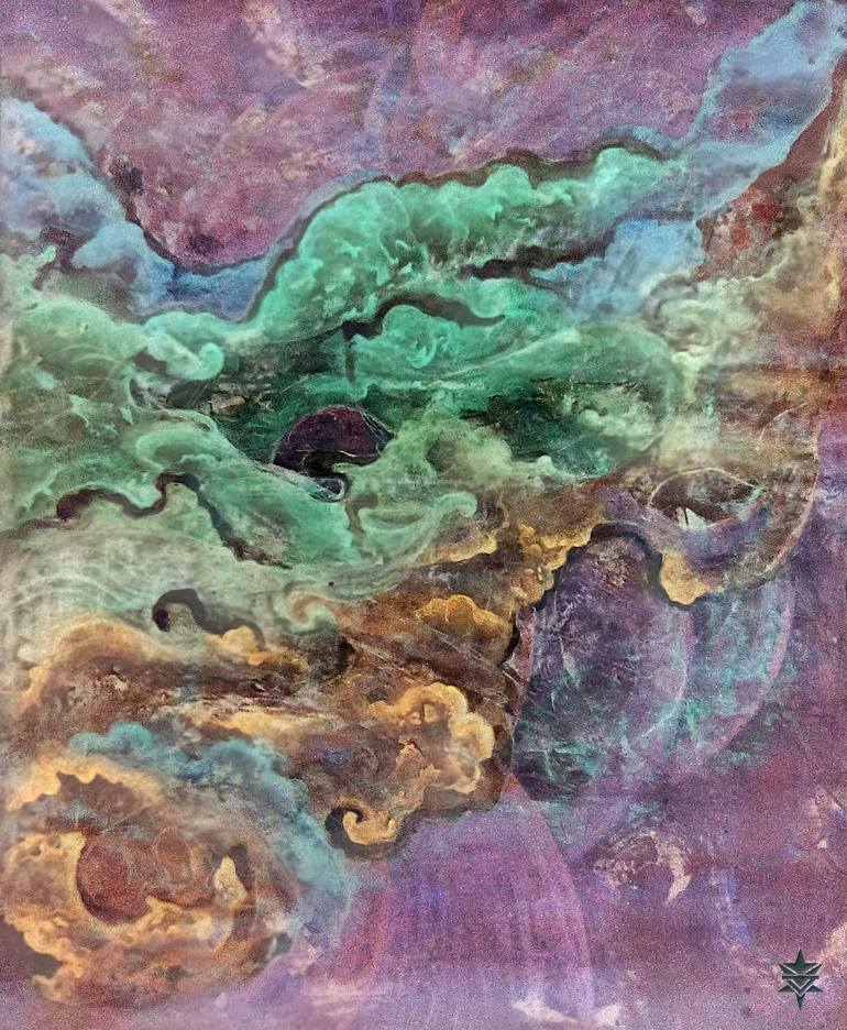 He born in Caracas and raise between Caracas and Píritu (Anzoategui). currently lives and work in Caracas. influenced by an spiritual search and guided by a scientific mind, his art revolves around one thing; the search for the underlying, what is hidden, a kind of primary and chaotic form that contains everything. These "cosmic truths" manifest themselves from the nanoscopic to the immeasurable, through their own mysterious languages present in the material and even in their own person. This is a metaphor for the work of the demiurge kneading logos from chaos and creating matter and the rational. "The creative act is the Sacred Ritual that links human beings and the Cosmos".