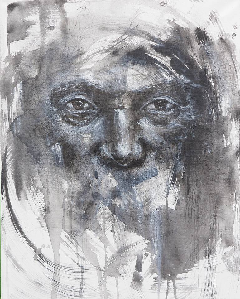 ink,charcoal and spray paint on gallery wrapped canvas -ships flat with certificate of authenticity -signed and dated on back