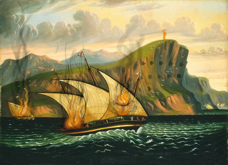 This captivating mixed media artwork, "vista en gibraltar," is a limited edition print, one of only three ever made. It began as a digital intervention on a Thomas Chambers painting, now reimagined through a contemporary lens. Printed on high-quality semigloss paper, the vibrant details and subtle t...