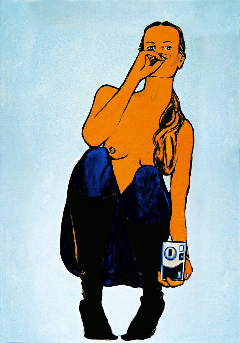 nude female with camera