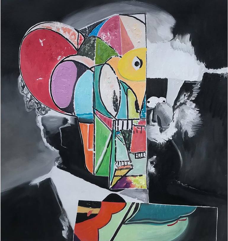 Collage-like painting, found inspiration from the contemporary art scene. 44x38 inches Oil, acrylic on canvas Shipping in a crate THIS WORK IS ON AN EXHIBITION TILL JUNE 7TH.