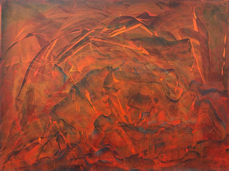 My work is non-objective. Please read my bio for more info regarding my process. Finished with an imperceptible brushed on matte clear coat that brings richness to the colors and protects the piece.