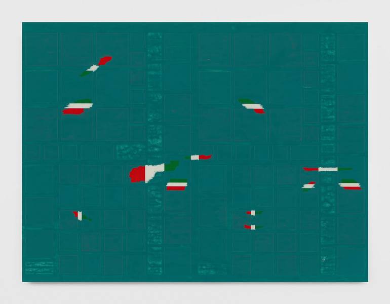 12=3x4 from THE SOUND OF WAR / SERIE DUE is an artwork by Gašper Jemec. It was created in Galatina, Salento, Puglia, Italia in 2024 by using acrylic paint and stickers on paper. Size of the work is 16 x 21,7 cm / framed 36 x 48 cm.