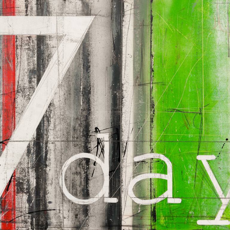 Since 2002 words, lyrics and music inspires Patrick to create his expressionistic artwork. In the process of painting he explore the balance between the translation of sound into colours and the written statements, shown in text parts and key words within the pieces. The artwork will include a mix of typography as well as fragments of pictures. Patrick´s technique is acrylic based mixed media work with collage parts, spray paint elements and pencil highlights. The surfaces are scratched and with several layers of colour. The best way to explore the art of Patrick Motyl: place yourself somewhere comfortable in front of hiscompositions, headphones on and take a visual dive into the sound. Ask Patrick for commisioned artwork – Your company sign, major dates of your life or your favourite poems – everything can be visualized.