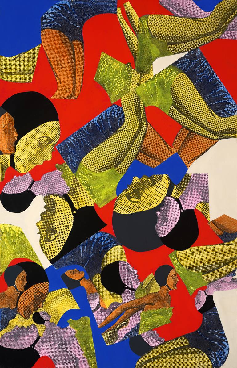 Mixed media work on paper handprinted and then painted. Retro women divers with bathing caps from the 1950's create patterns with bold colors. From the Divers series. This piece can be used on its own or with # 1 Diptych Divers in Red and Blue. The piece is fun and graphic. I like to work with ...