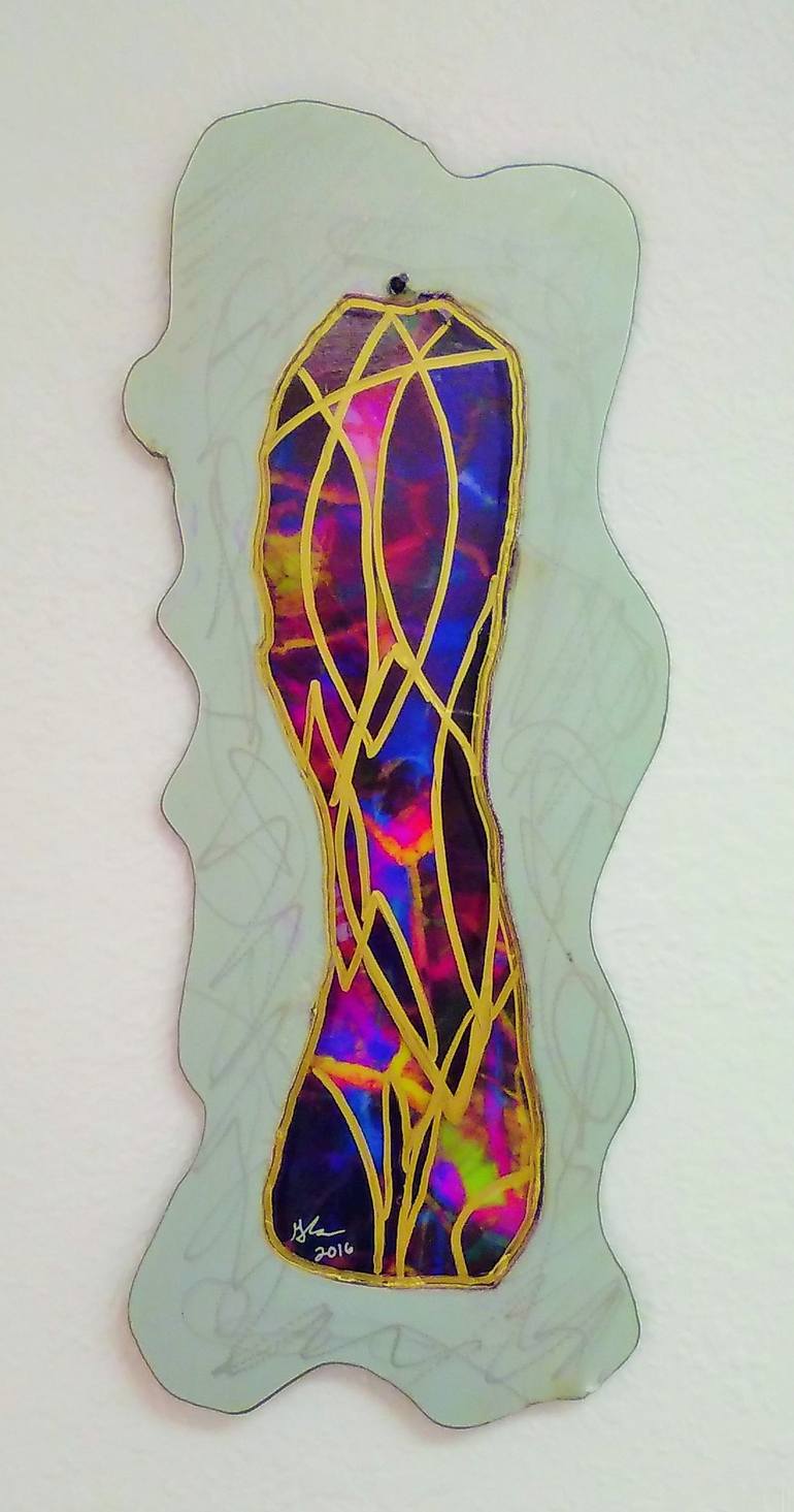 This work is designed to hang in any direction and can hang in a window or on a wall. It is two sided and translucent and lightweight metal and plastic. Please note. All measurements are approximate. For exact measurements send a message to artist Gretchen Smith. I like the translucent aspect of s...