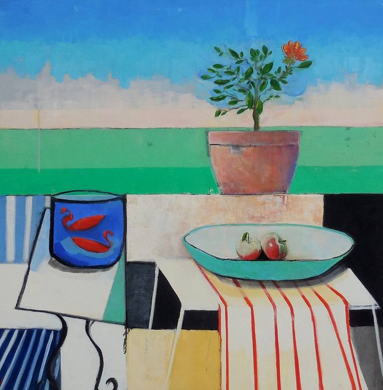 My paintings are subconsciously motivated images invoking a beginning. The beginning of a journey, whether internally or externally taken. "If you know exactly what you're going to do, what is the point of doing it?" is a quote from Picasso with which I very much agree. My imagery and use of color are a result of experimenting with various transfer methods, collage, and paint application. This process stimulates underlying themes that are at times autobiographical, political, environmental, or mystical. Another source of inspiration for my painting comes from the landscape, especially when I travel. Painting the landscape keeps my eye and my mind in tune with the natural elements and, in turn, serves as a resource for work in the studio. I often revisit my work and let the image dictate its completion. Quite a few paintings on this site are maquettes for grander explorations in both size and imagination.