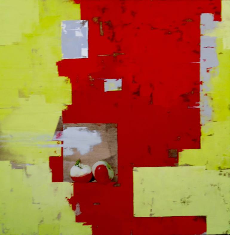 #2 rose apples on red/citron and grey Painting