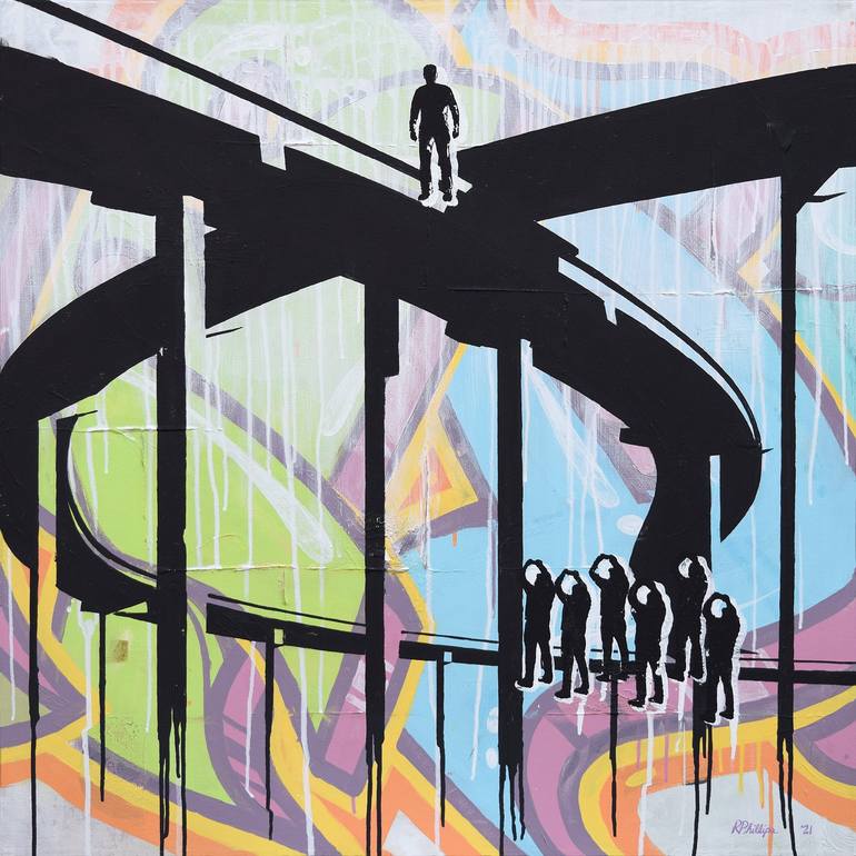 This painting is dedicated to all the victims of social media. I hear constant stories of tragic accidents happening with crowds of people as witnesses - pulling their phones out, not to call for help, but to take pictures to post on social media. Most of us have become numb to these shocking events...