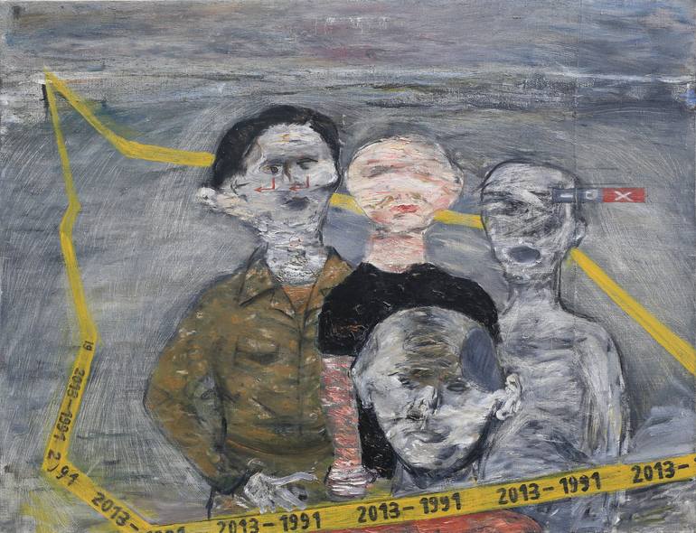 The painting is playing with mind. Time and happening, personal and political are flying on the head.
