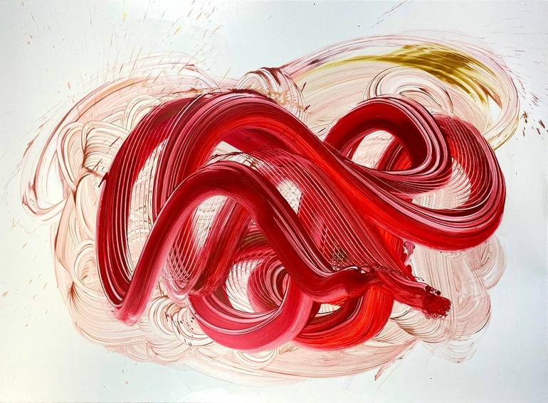 These paintings are generated by hand. In an instant. Super-fast. But in a way they still contain and spatially embody the extremely focused seconds it took me to bring each and every one of them into being. Always the earlier parts of the stroke are spatially further back. The last bits must alway...