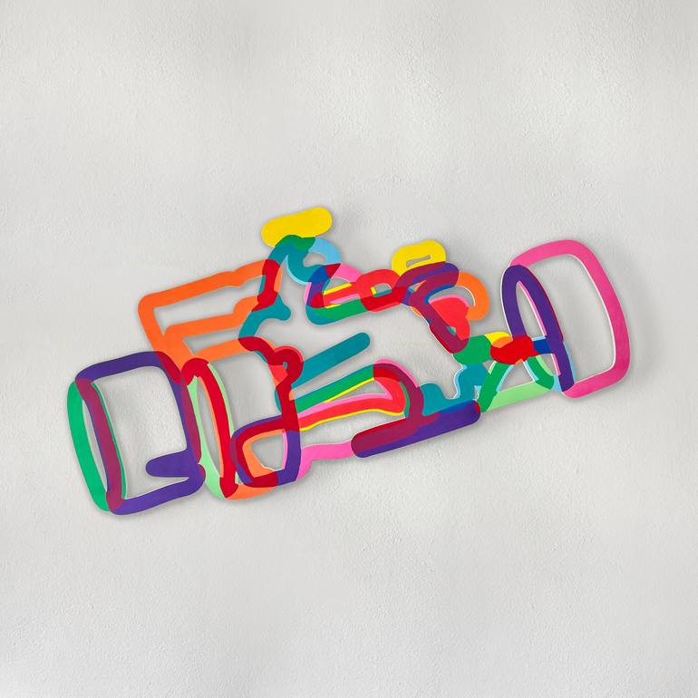 A sculpture of a human figure moving extremely fast. The boundaries of the human figure dissolve. The person and his vehicle become single a condensed shape. 140 x 77 cm / 55.1 x 30.3 in Acrylic paint on a shaped PVC panel. Signed and dated. Ready to hang. Stand-offs at the back provide a visible ...