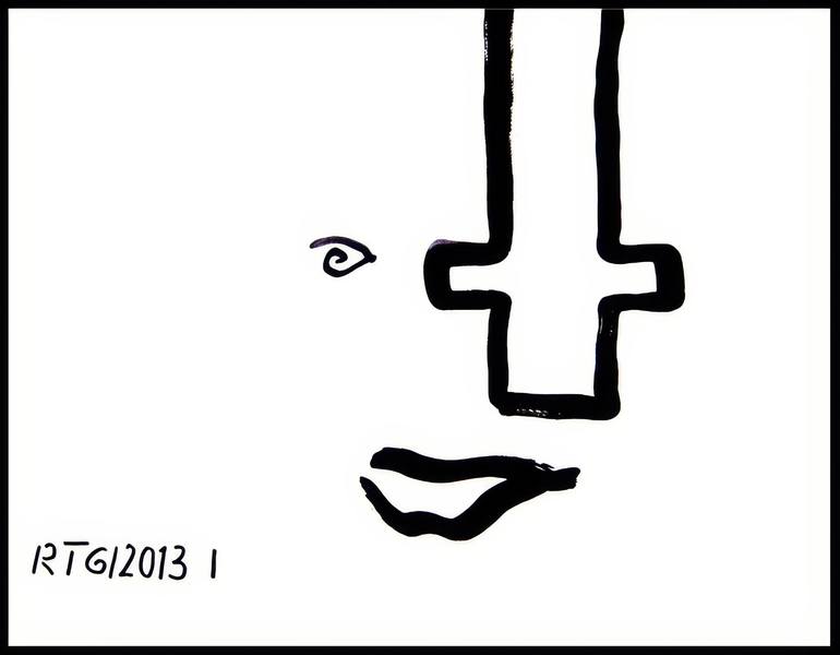 My works mainly deal with the topics of religion, politics and emotions. I follow very strict rules: Each motif is created with acrylic paint using a maximum of three black lines with different line widths. These are painted in one go and must neither touch nor intersect.