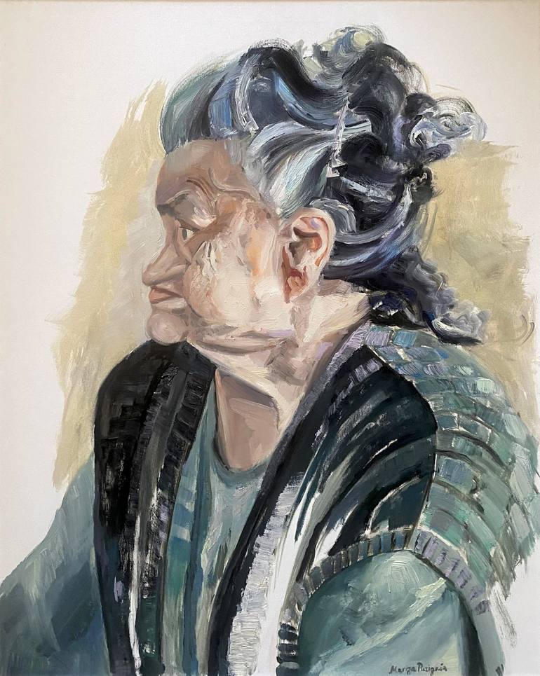The inspiration is a portrait of an old woman. I aspire to give matter a new identity and discover its properties through portrait painting