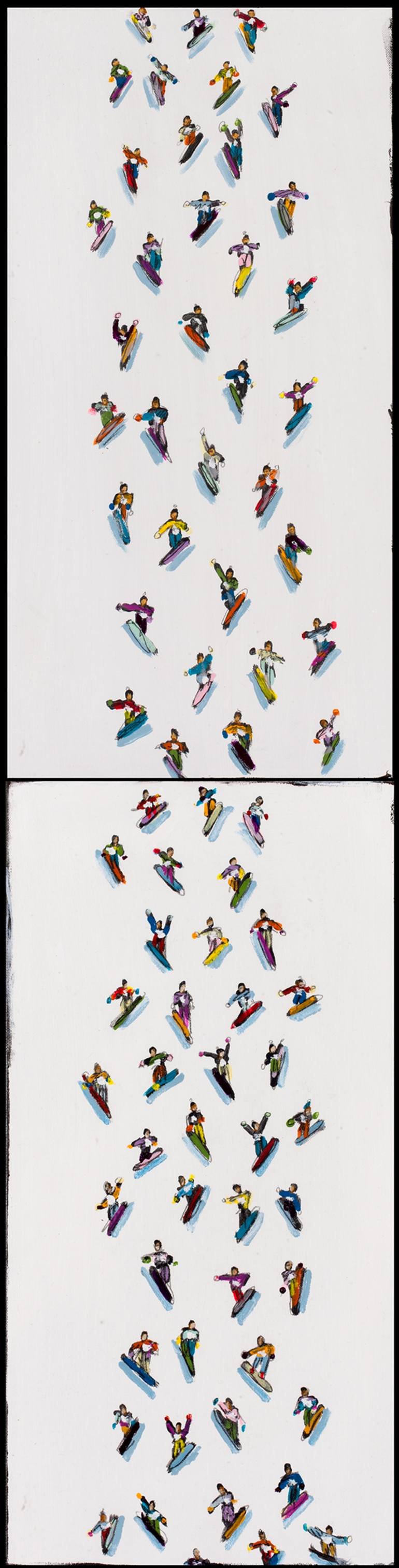 Included in Saatchi's 20 ARTISTS TO WATCH IN 2020 and UP AND COMING AMERICAN PAINTERS in 2023 COLLECTORS FAVORITES CATALOG 2025 Clients include PGA Tour, Jacksonville Jaguars, Big Sky Resort Montana, Gaylord Marriott Denver Colorado, Fidelity Securities, Everbank, PNC Bank, KPMG, RSM Canada and many many more. A twenty plus year career as a professional artist, Heather is known for her creative works depicting the art of motion while celebrating competition and the human spirit, Heather Blanton is an American painter, sculptor and photographer living and working in St. Augustine, Florida and New York City. Her latest series, “Sports,” depicts a wide range of subjects from golfers in mid-swing to cyclists peddling toward the finish line to hundreds of marathon runners racing to glory. Born in Jacksonville, Fla. in 1973, Blanton studied art at the University of North Florida and The Art Institute of Fort Lauderdale. She spent three years living in New York City exploring hand-manipulated and distressed Polaroid SX-70 film images. As analog film teetered on the edge of extinction, Blanton turned to fine art painting as her next medium. Today she has created hundreds of large and small sports paintings influenced by Abstract Expressionism and conflicted by a blend of animation and whimsy. “My works are focused on the energy of the race,” Blanton explains of her “Sports” series. “They are easily distinguishable by compositional elements of color and form. By creating dialog between the viewer and the subject matter, this series is a cohesive collection of flat images with a chaotic, pattern-like style where the lines and negative spaces are almost as important as the subject matter.” A professional artist since 2004, Blanton has successfully shown in nearly 50 exhibitions and her work can be found in public and private collections around the globe from Amsterdam and Atlanta to Manhattan and Miami. She has been featured in numerous publications and media outlets and continues to work as the conduit to capture her client’s passions of skiing, cycling, golfing, horse racing, and everything in between.
