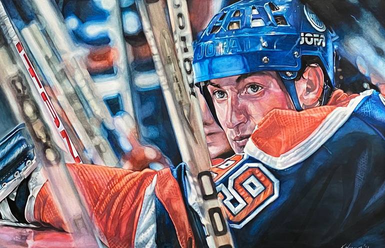 An original watercolour painting of the great one Wayne Gretzky on fine art paper 18x24