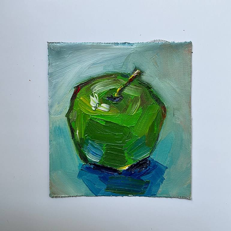 On the tip of my brush lies the legacy of Adam and Eve. The apple, the eternal symbol of a beginning—perhaps a fall, or maybe a rise. In the dance of red, green and gold, the taste of that first sin lingers. It sits at the heart of the canvas, waiting to be shared.