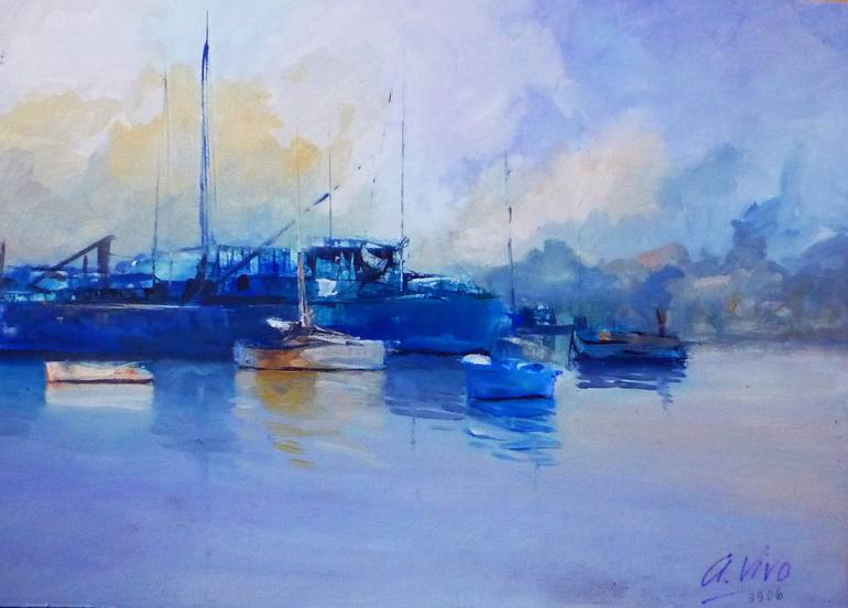 "Painting the sea and sky provides me with the perfect excuse to express myself in my love of color and bold strokes. The abstract aspect of my paintings enables me to experiment and get lost in the imagery it evokes, while allowing the viewer to interpret the work through their own feelings and emotions. There is nothing shy about the sea nor in my work!", says the artist. Having honed his craft for more than 30 years, Vivo's body of work encompasses various themes, from realistic and semi-abstract landscapes, seascapes and beaches, to abstract human forms and shapes. His preferred technique is oil on canvas or board using palette knives and brushes, with bold strokes and colors. For many years, he held the position of Director of The Painters & Sculptors Association of Uruguay. Vivo currently heads his own atelier, located in Montevideo, where he teaches art and exhibits his paintings. His work is included in private and corporate collections worldwide. He has been awarded several prizes at art contests for paintings, drawings and installations. He has illustrated books and book covers.