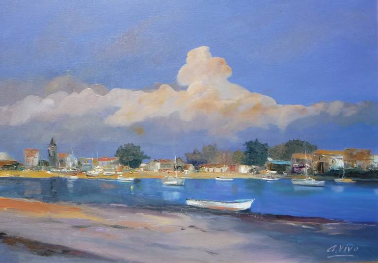 "Painting the sea and sky provides me with the perfect excuse to express myself in my love of color and bold strokes. The abstract aspect of my paintings enables me to experiment and get lost in the imagery it evokes, while allowing the viewer to interpret the work through their own feelings and emotions. There is nothing shy about the sea nor in my work!", says the artist. Having honed his craft for more than 30 years, Vivo's body of work encompasses various themes, from realistic and semi-abstract landscapes, seascapes and beaches, to abstract human forms and shapes. His preferred technique is oil on canvas or board using palette knives and brushes, with bold strokes and colors. For many years, he held the position of Director of The Painters & Sculptors Association of Uruguay. Vivo currently heads his own atelier, located in Montevideo, where he teaches art and exhibits his paintings. His work is included in private and corporate collections worldwide. He has been awarded several prizes at art contests for paintings, drawings and installations. He has illustrated books and book covers.