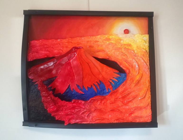 3D art "Red Mt. Fuji and Clouds at sunset" (3D painting) Outdoor Painting