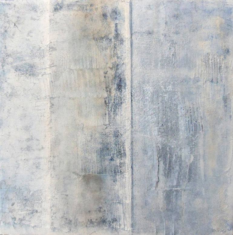 CHASSIS TOILE 40X40 cm Epaisseur 4 cm ENDUIT MATIERES EPAISSEURS GRATTAGES MARQUES ACRYLIQUE BLEU OCRE BLANC quand j'étais très jeune, les murs abimés avec le crépi qui tombait m'inspiraient ; j'y découvrais des ombres, des lumières, des formes et cela me touchait beaucoup. Je n'ai pas changé et je ...