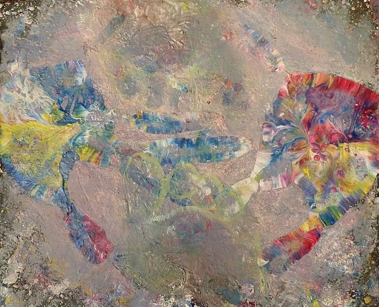 MAN, WOMAN TOUCH ll:- Through a strong, nuances-full painting, which is opened to the figurative experimentation and attracted by the material aspect of colors, Danilo shows us his mastery, making us able to dive into an imaginary and chromatic cosmos. Spirals of floating atoms, worlds suspended i...