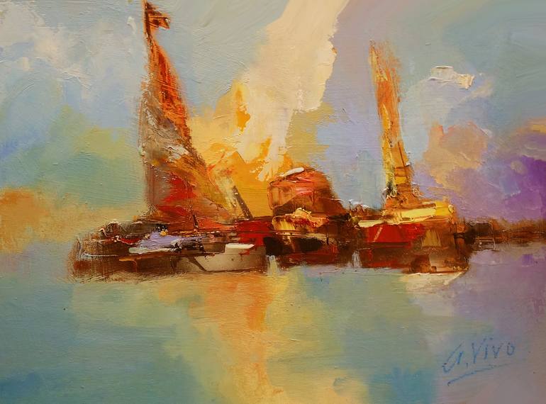 "Painting the sea and sky provides me with the perfect excuse to express myself in my love of color and bold strokes. The abstract aspect of my paintings enables me to experiment and get lost in the imagery it evokes, while allowing the viewer to interpret the work through their own feelings and emotions. There is nothing shy about the sea nor in my work!", says the artist. Having honed his craft for more than 30 years, Vivo's body of work encompasses various themes, from realistic and semi-abstract landscapes, seascapes and beaches, to abstract human forms and shapes. His preferred technique is oil on canvas or board using palette knives and brushes, with bold strokes and colors. For many years, he held the position of Director of The Painters & Sculptors Association of Uruguay. Vivo currently heads his own atelier, located in Montevideo, where he teaches art and exhibits his paintings. His work is included in private and corporate collections worldwide. He has been awarded several prizes at art contests for paintings, drawings and installations. He has illustrated books and book covers.