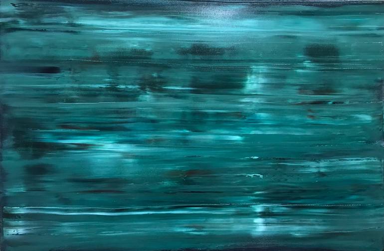 An original abstract expressionist oil painting focusing on monochromatic color fields. With the conceptual idea or premise being a look at a point in time that eludes the observer .