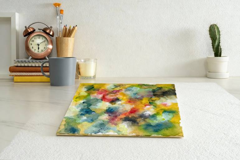 6 vibrant abstract artworks created with India inks on 12x 12 inches 2mm MDF panel. The colors are a joyful mix of red, green, lemon yellow, cyan, magenta, and more, forming a light-hearted composition of round bubbles and geometric shapes. Concentric and conjoined circles create a captivating and d...