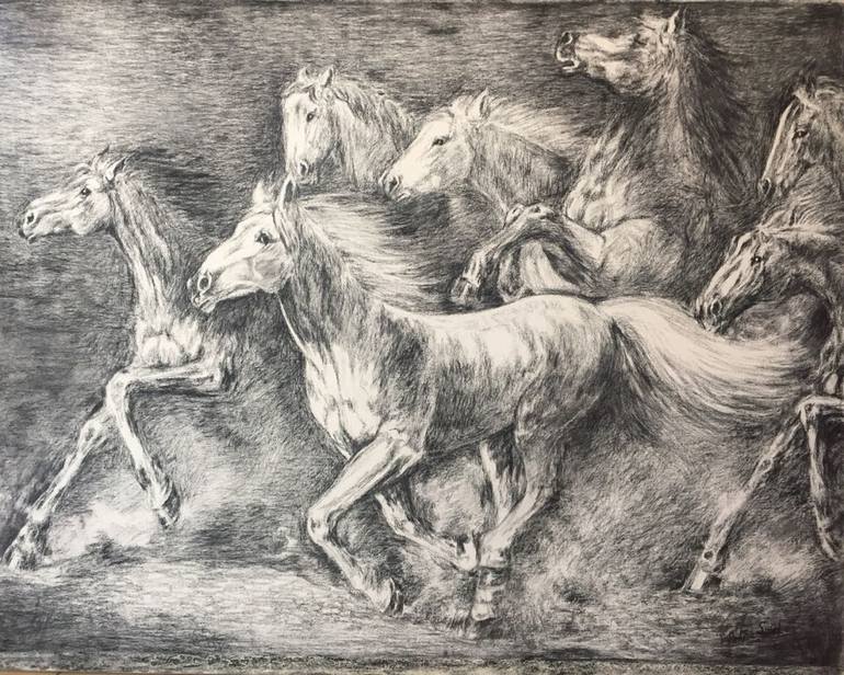 This subject- Horses, is my personal favorite. Horse inspires Good luck, speed, movement and power. It gives positive vibes to see horse in motion. Charcoal is a very tough medium to work with, hence found it challenging to see the my black willow charcoal sticks move on the pure white canvas. Art ...
