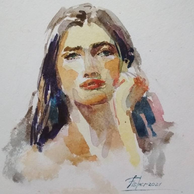 Portrait of a beautiful girl. Original work, in one copy. Watercolour paper, watercolour.