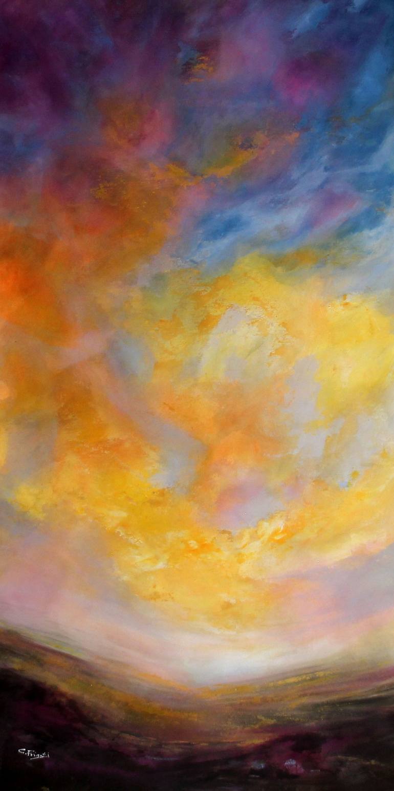 Cecilia’s artworks are lively and buoyant with explosions of colours and freedom which mirror the intensity of her own view of the natural sceneries. She is a real creator and inventor always seeking new forms of art and techniques to express her inner self. Her paintings generate from memories and visions that flow onto her canvas instantly leaving enough freedom for the viewer for their own interpretation. She specialises in large contemporary atmospheric landscapes and super-sized floral compositions using her unique abstract techniques as well as more organic and intimate abstractions. Her large scale paintings combined with her unique free-flowing abstract techniques have brought her great recognition and her works have been selling all over the globe to private collectors and for interior design projects. Born and raised in Italy but upon receiving her degree in Painting from the Bologna’s illustrious Accademia Di Belle Arti Cecilia moved to London,UK and over the years she established herself as a full-time independent artist. Currently lives and works in rural Hungary where she solely focuses on her art practice. She is a very approachable character and enjoys engaging and working closely with her clients let them be private home owners or interior design specialists.