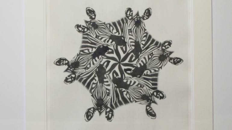 My objective with this painting was to create a dynamic, abtract composition using a simple, recognizable object in a repetitive circular pattern.