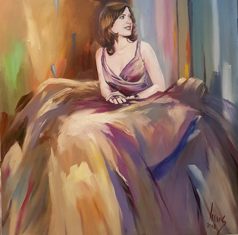A Happy Day is an inspiring self portrait of the author, artist and humanitarian Lamees Alhassar. This artwork is an original oil painting, one of a kind. This oil painting comes with an authentication letter signed by the artist.