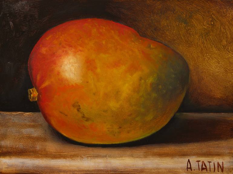 SOLD This is an original 5x7 oil painting on a hardboard panel. It depicts a ripe mango.