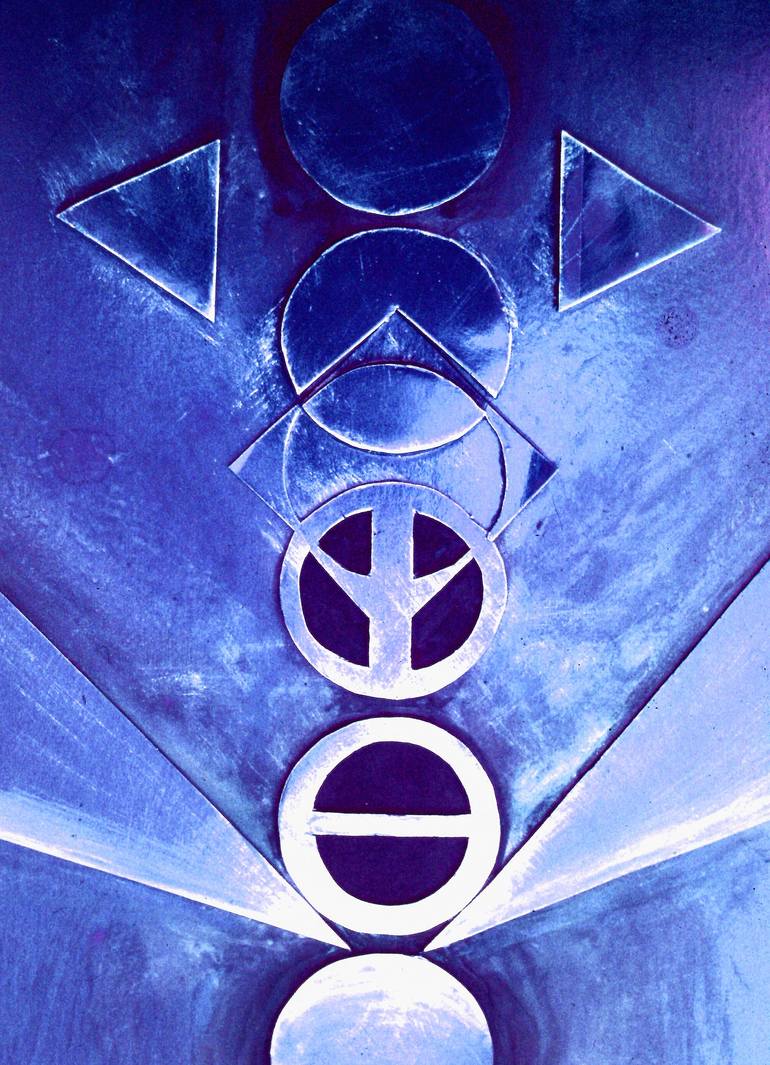 Blue. Construction, defining via conceptualization the chaos of the post-millenial new world, way, and loosely termed "Order." Strength lies within the definition to which we agree, accept, and pursue as a part of the larger whole (each of us). Color begins to define us, as part of a group, in this ...
